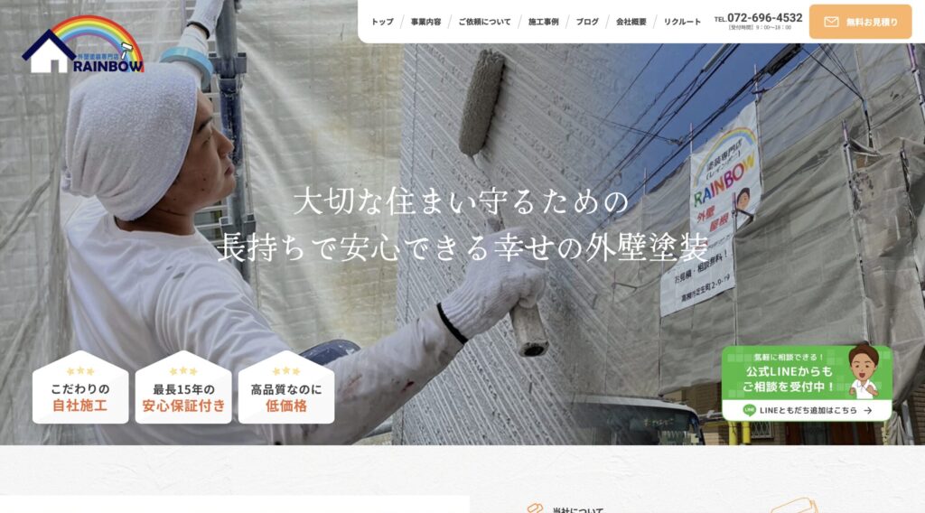 RAINBOWは初めて塗装を検討する方でも安心して相談・依頼できる選択肢として非常におすすめできる会社です。住まいのメンテナンスを考えるなら、ぜひ候補に加えてみてください。