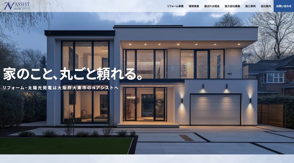 株式会社Nアシストは、住まいのあらゆる改修・設備更新に一社で対応できる総合力と、地域に根ざした丁寧な施工・対応力を備えた企業です。リフォームや塗装、設備導入を考えている方にとって、初心者でも安心して相談・任せられるおすすめの会社です。