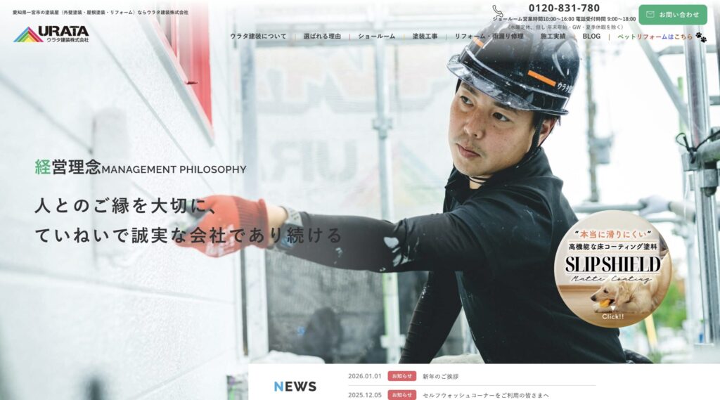 ウラタ建装株式会社は、愛知県一宮市を拠点に外壁塗装・屋根塗装・防水工事・雨漏り修理から外構・内装リフォームまで幅広く対応する地域密着型の施工会社です。単なる塗り替えではなく、「住まいの寿命を延ばす工事」を重視し、耐久性・防水性・機能性にこだわった施工を行っています。