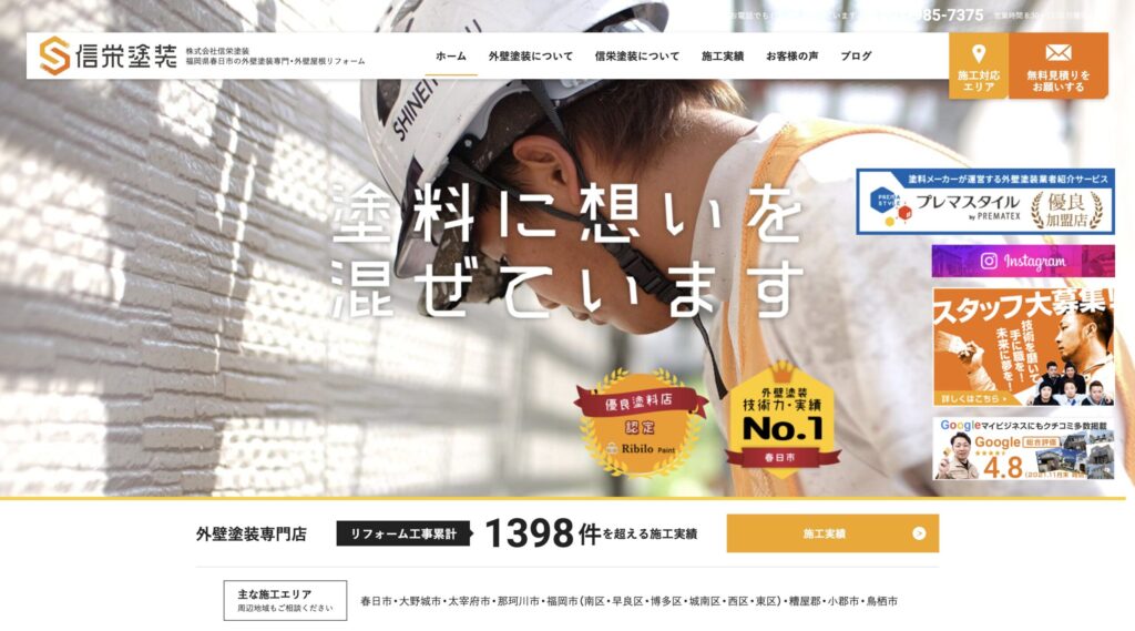 信栄塗装は福岡県糸島市・福岡市西区を中心に、自社施工・適正価格・職人の技術力・地域密着の姿勢で選ばれている外壁塗装専門店です。