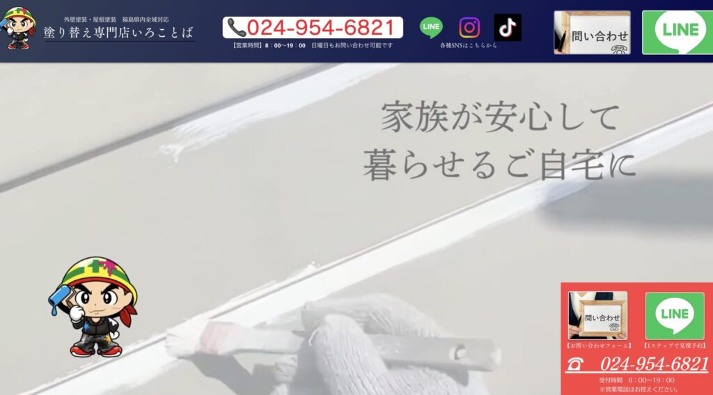 塗り替え専門店いろことばは、福島県郡山市を拠点に県内全域で外壁塗装・屋根塗装・防水工事・雨漏り修理を専門に手がける地域密着型の塗装工事会社です。