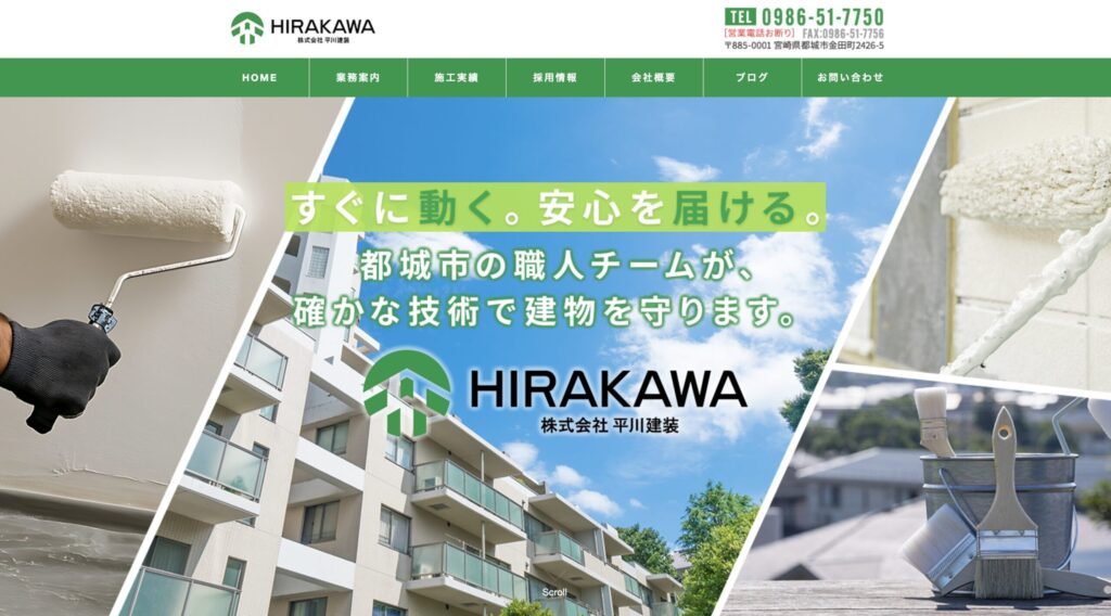 宮崎県都城市を拠点に、外壁・屋根の塗装から防水工事・リフォームまで幅広く対応している株式会社平川建装。地域密着の姿勢とプロの職人チームによる丁寧な施工で、お住まいの“塗り替え”を安心してお任せいただける存在です。