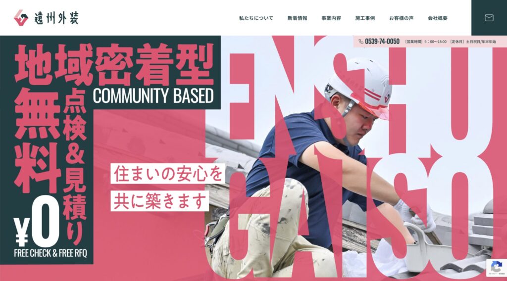 遠州外装は、静岡県磐田市を拠点として屋根・塗装・防水・内装・外構など幅広いリフォームを手がける地域密着型の外装・リフォーム会社です。無料点検・見積もりサービスを提供し、住まいの美しさと耐久性を守ることをモットーとしています。地元で愛される迅速な対応、施工実例やお客様の声も公開されていて、依頼前に安心感を持って相談できる構成になっています。